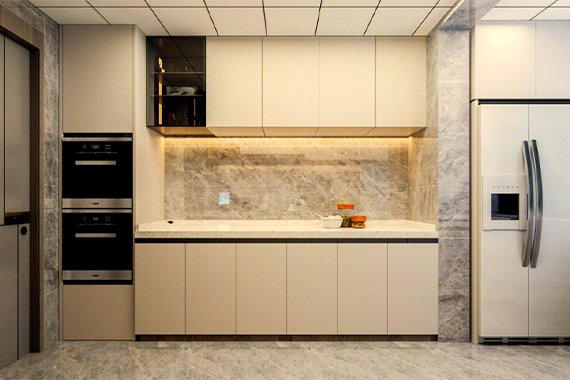 其次,考虑使用嵌入式电器。嵌入式电器是一种将冰箱、洗碗机、烤箱等电器设备嵌入到餐边柜或厨房柜子中的设计。通过这种设计,我们可以将电器设备与柜子融为一体,既节省了空间,又提高了整体美观度,使整个餐厨看起来更加整洁和现代化,空间利用率更高。